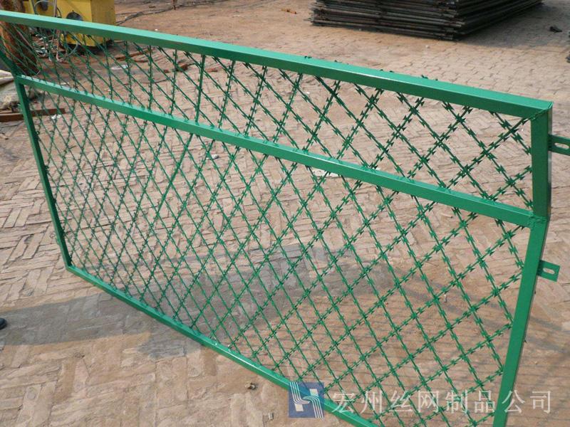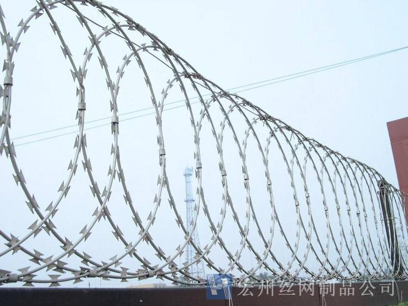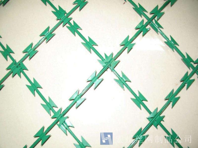 刀片刺網(wǎng)是一種新型防護(hù)網(wǎng)。該產(chǎn)品具有防阻效果好,美觀,施工便利,經(jīng)濟(jì)實(shí)用等優(yōu)異特點(diǎn)。主要用于園林公寓.機(jī)關(guān)單位、監(jiān)獄、哨所、邊防等的圈禁防護(hù)。山東湖東、湖西的刀片刺網(wǎng)護(hù)欄是由宏州護(hù)欄網(wǎng)廠生產(chǎn)并施工安裝的。