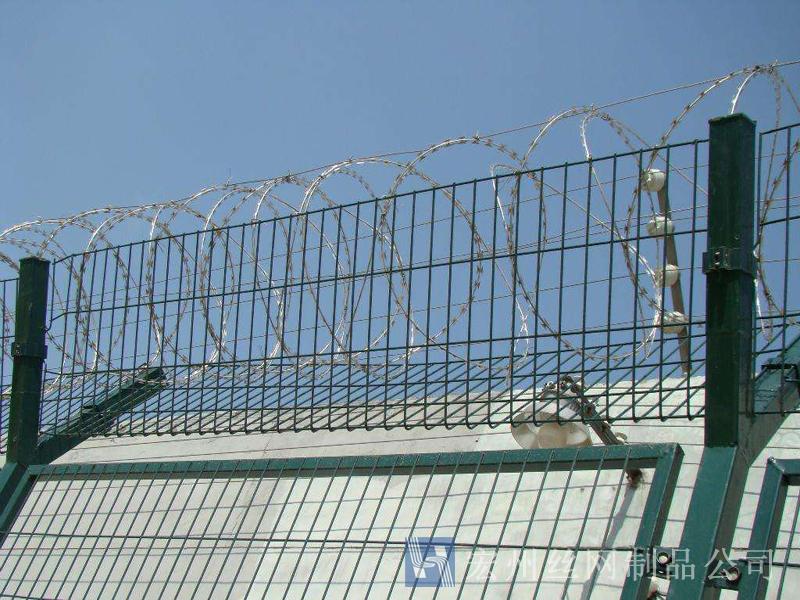 監(jiān)獄防護網(wǎng)又稱監(jiān)獄隔離網(wǎng)或監(jiān)獄隔離柵,山東監(jiān)獄隔離網(wǎng)產(chǎn)品由護欄網(wǎng)直接生產(chǎn)廠家--宏州護欄網(wǎng)廠生產(chǎn)提供,產(chǎn)品主要是采用高強度的刀片刺網(wǎng)與普通防護網(wǎng)的結(jié)合,由V型支架立拄,加強型焊接片網(wǎng),安全防盜連接件和刀片刺網(wǎng)組成.刀片刺網(wǎng)是一種新型防護網(wǎng),由銳利尖角鍍鋅鋼板或不銹鋼薄板做刀片,鋼絲做芯線組合而成的防護器材.監(jiān)獄刺網(wǎng)護欄可平地安裝,也可在圍墻上二次安裝,有效防止攀逃。